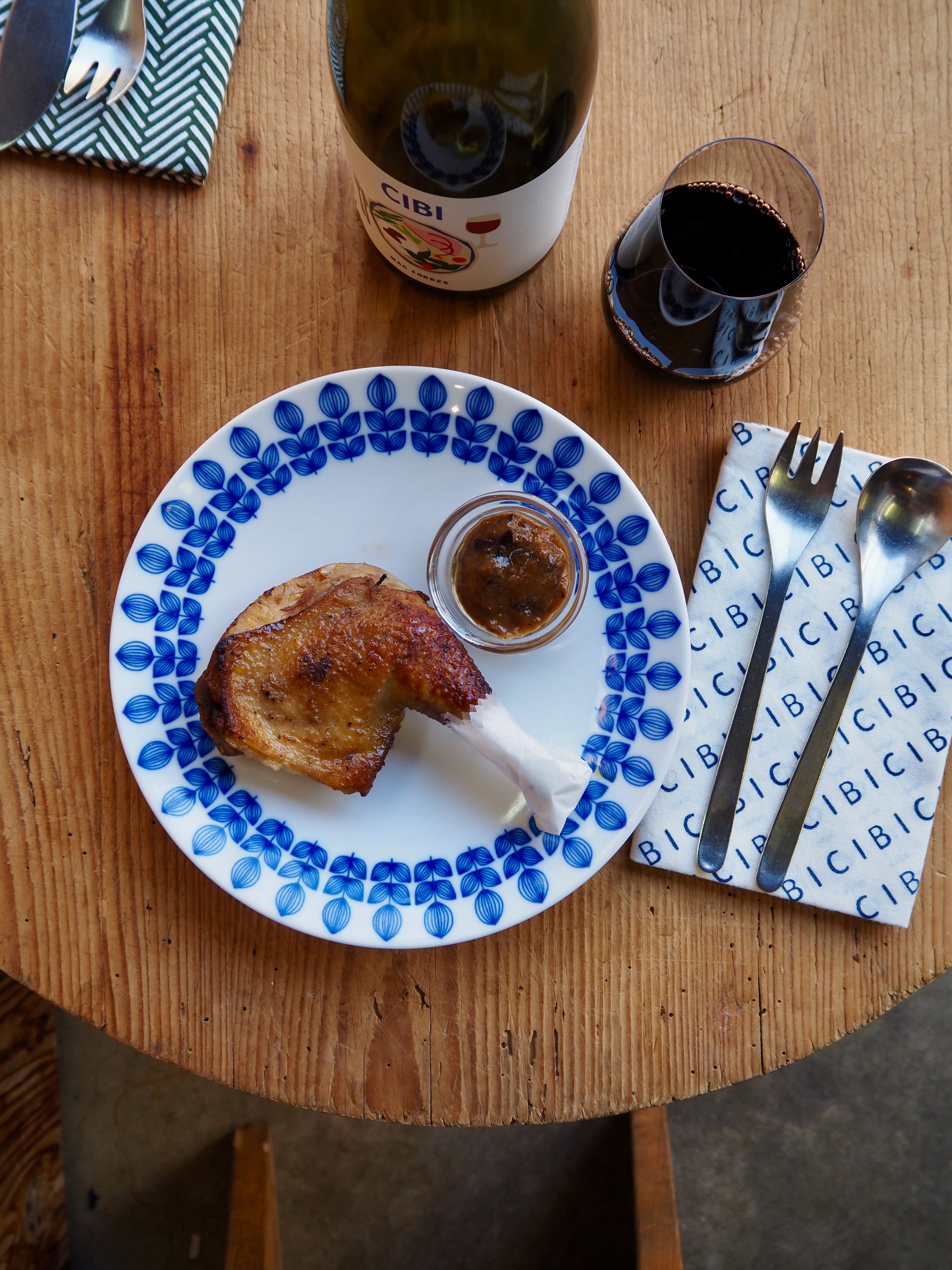 プルーンやオニオン、塩麹でマリネした国産骨付き鶏もも肉を、オーブンでじっくりと焼き上げました。